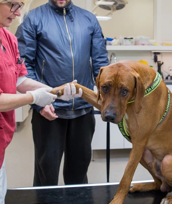 På vår poliklinik arbetar erfarna veterinärer i nära samarbete med legitimerade djursjukskötare och djurvårdare. Tillsammans tar vi hand om allt från hälsokontroller, vaccinationer och förebyggande vård till mer omfattande undersökningar och utredningar av sjukdomar och skador.